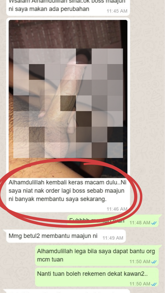 *PENAFIAN: Keberkesanan produk ini bergantung kepada kesesuaian individu. Setiap hasil dari penggunaan adalah berbeza bagi setiap individu. Produk ini akan memberi kesan terbaik sekiranya pengguna mengamalkan dengan cara betul berdasarkan banyak testimoni yang diperolehi. Kita berikhtiar, tuhan yang menyembuhkan.
