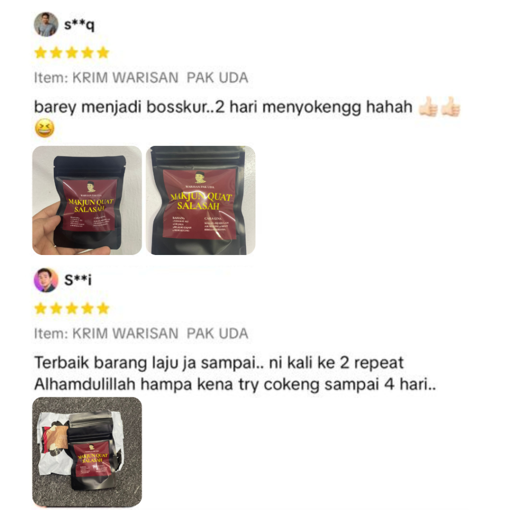 Kalau Macamtu Tuan2 Baca Lah Sendiri Antara Feedback Dari Customer Pak Uda :
